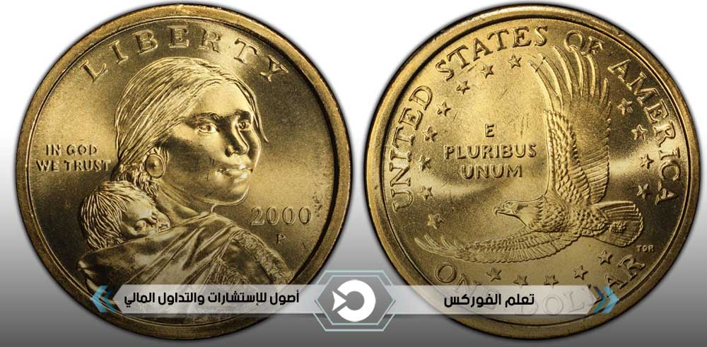 تحمل عملة الدولار، التي يشار إليها غالباً بالدولار الذهبي، صورة ساكاجاويا (2000) على الوجه وزخارف مختلفة (4 تصميمات سنويًا) على الجانب الخلفي يزن 8.10 جرامًا ويبلغ قطره 1.043 بوصة، ويتكون من 88.5% نحاس، 6% زنك، 3.5% منغنيز، و2% نيكل. الحافة بسيطة من عام 2000 إلى عام 2006 ومكتوبة بالحروف من عام 2007 فصاعداً يتم إصدار العملة بكميات محدودة.